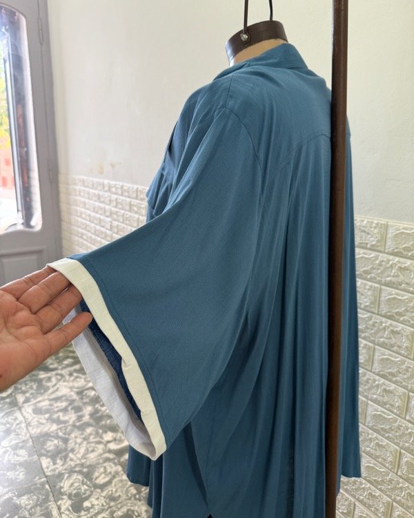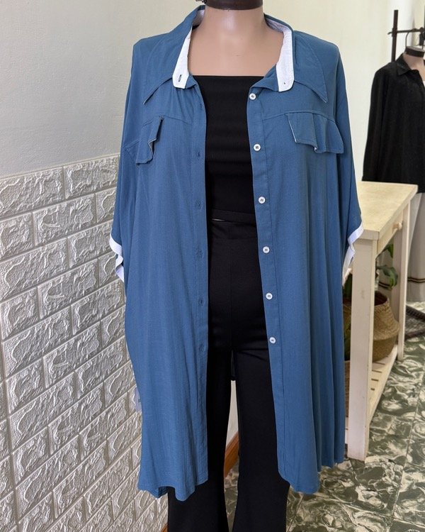 Hermosa camisa de lino elastizada combinada, tela plana con excelente movimiento y caída. A continuación las medidas ( contornos )