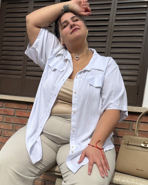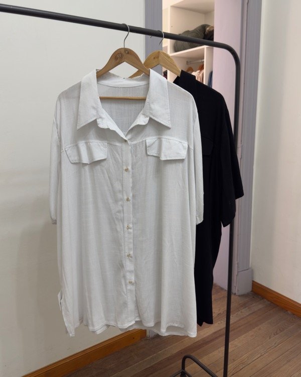 Camisa de lino elastizado manga corta, canusu y tabla en la espalda , tajos en los costados. Este modelo viene en blanco y negro a continuación las medidas.