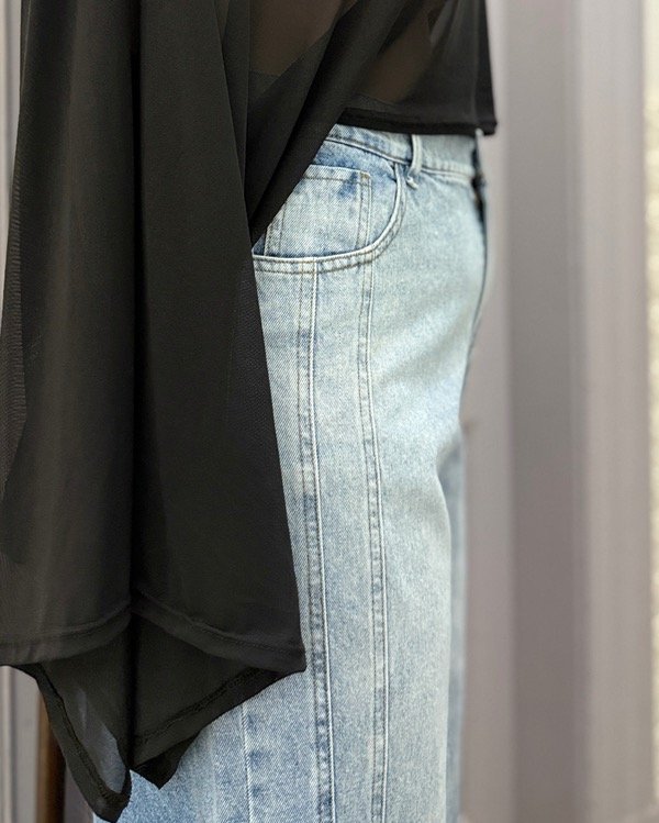 Wide de jeans liviano con recortes, tiro alto y bolsillos. Calce alucinante, cómodo y canchero. Este modelo viene del talle 44 al 56. A continuación las medidas.