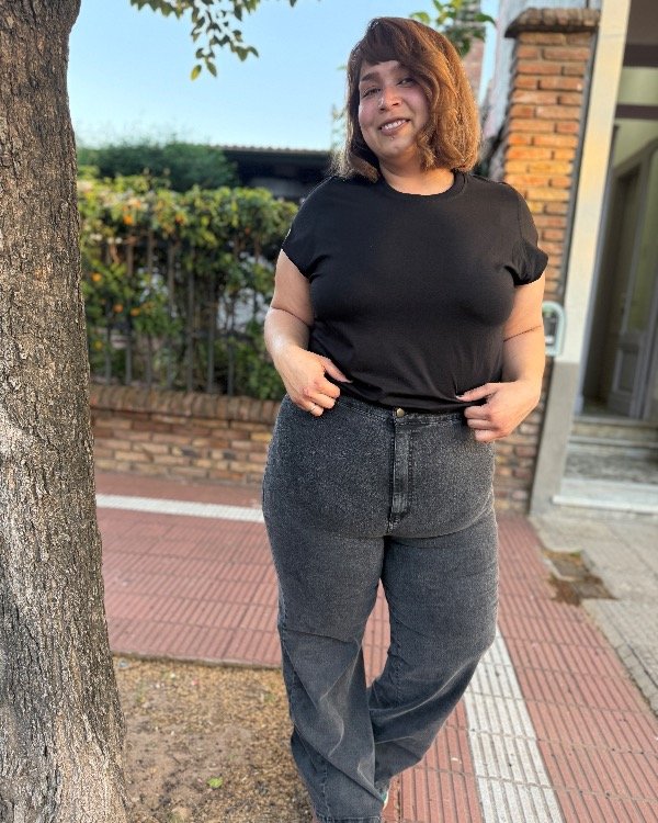 El modelo cuenta con bolsillos traseros, tiro alto y pasacinto. A continuación las medidas.
